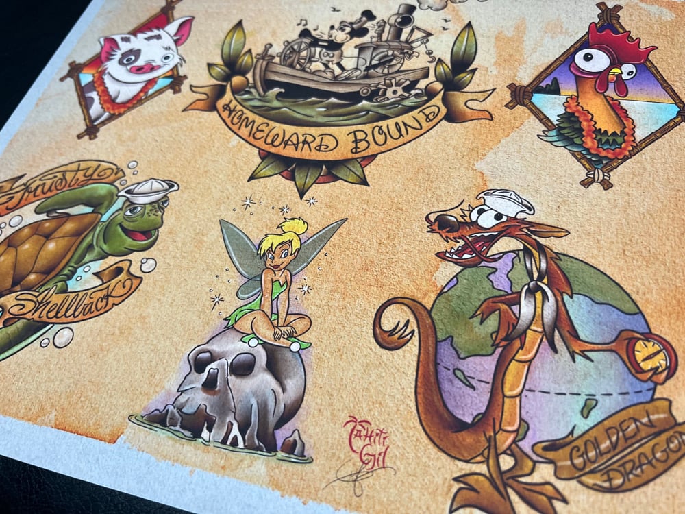 Disney Inspired Traditional Tattoo Flash Sheet: D05 11x14